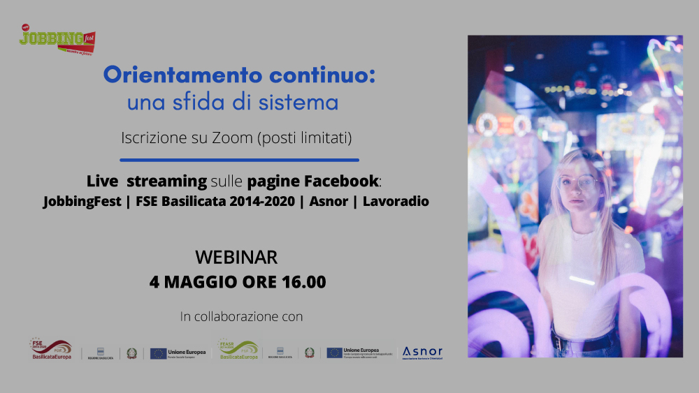 Martedì 4 maggio 2021 si è tenuto il webinar “Orientamento continuo: una sfida di sistema” organizzato da Jobbing Fest in collaborazione con Asnor. Rivedi la diretta (video).